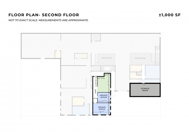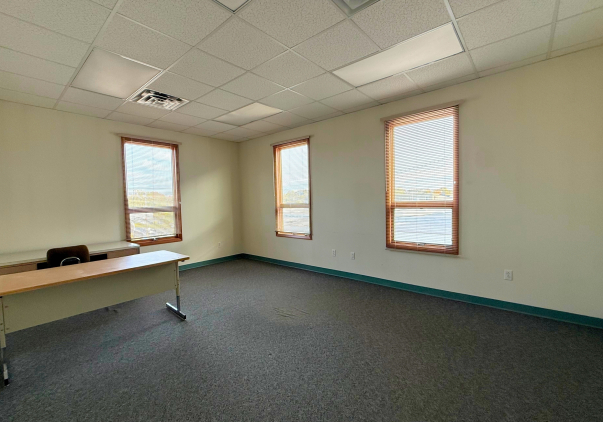 The second floor includes two private offices, a conference room, and a storage room. The building sits on an elevated lot with a dry basement and offers 20 parking spaces in two gated lots, ensuring ample room for employees, visitors, and operational vehicles.