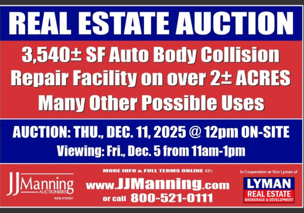 • REAL ESTATE AUCTION scheduled for Thursday, Dec. 11 at 12pm on-site