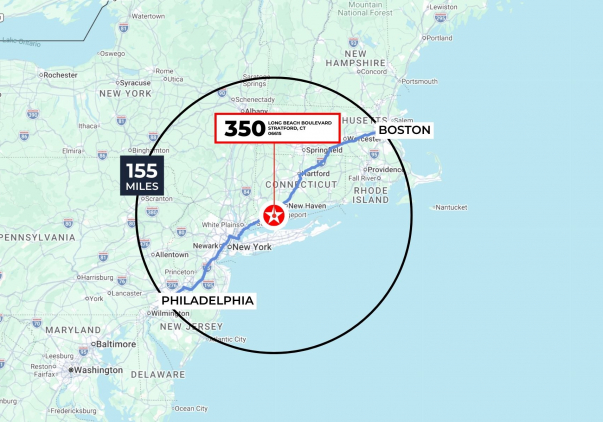 Located in the heart of the Northeast Corridor, 350 Long Beach Boulevard provides unparalleled regional reach. This stabilized asset sits just 1.2 miles from I-95 (Exit 30), offering seamless connectivity to New York City (under 60 miles) and major markets from Boston to Philadelphia. The site features direct regional access to Route 8, Route 25, and the Merritt Parkway, and is located only four miles from the Bridgeport Metro-North station—ensuring efficient distribution to a high-density consumer base.