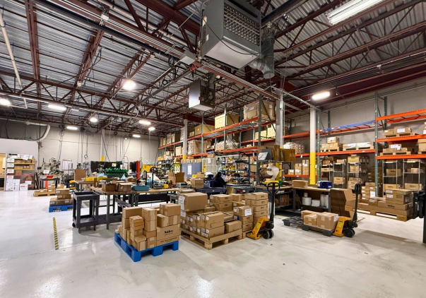 Suite 100 | 7,406 RSF Industrial Flex Space ($20/RSF Gross + Utilities): Ideally suited for contractors, logistics, or light manufacturing, this high-bay warehouse features 16' 3” clear heights, heavy power (2,000 Amps), and full HVAC. The unit includes two private drive-in doors for seamless street-level loading, a dedicated entrance, a kitchenette, and a private restroom with a shower. A 704 SF mezzanine provides additional office or storage oversight.