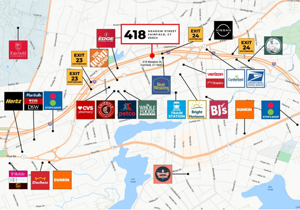 Angel Commercial, LLC, acting as the exclusive broker, is pleased to present a premier leasing opportunity at 418 Meadow Street, Fairfield, CT. This versatile 24,305 RSF building offers a mix of industrial flex space and professional office suites, situated in a high-demand commercial corridor just minutes from I-95 (Exits 23 & 24) and the Fairfield Black Rock Train Station.