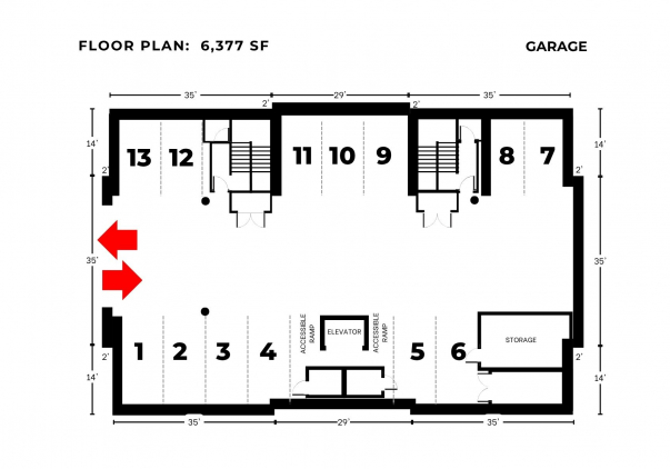 - Ample Parking – 49 surface spaces and 13 garage spaces